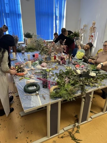 W dniach 22 -23 lutego 2025 roku słuchacze kierunku Terapeuta zajęciowy uczestniczyli w kursie "Florystycznym" zorganizowanym przez Pomorską Medyczną Szkołę Policealną w Sztumie w ramach projektu "Podniesienie jakości szkolnictwa zawodowego pomorskich medycznych szkół policealnych - etap II" w ramach programu Fundusze Europejskie dla Pomorza 2021 - 2027.